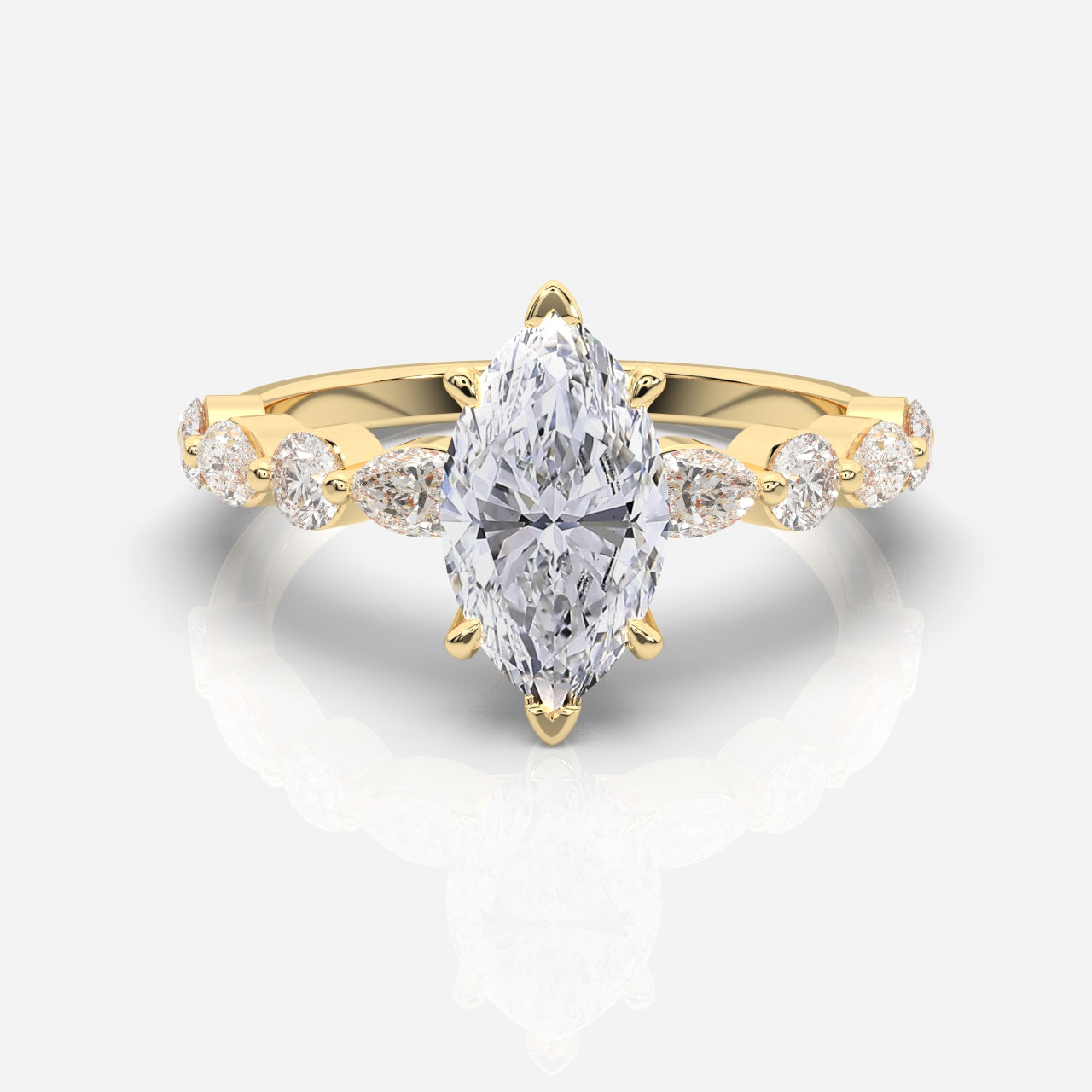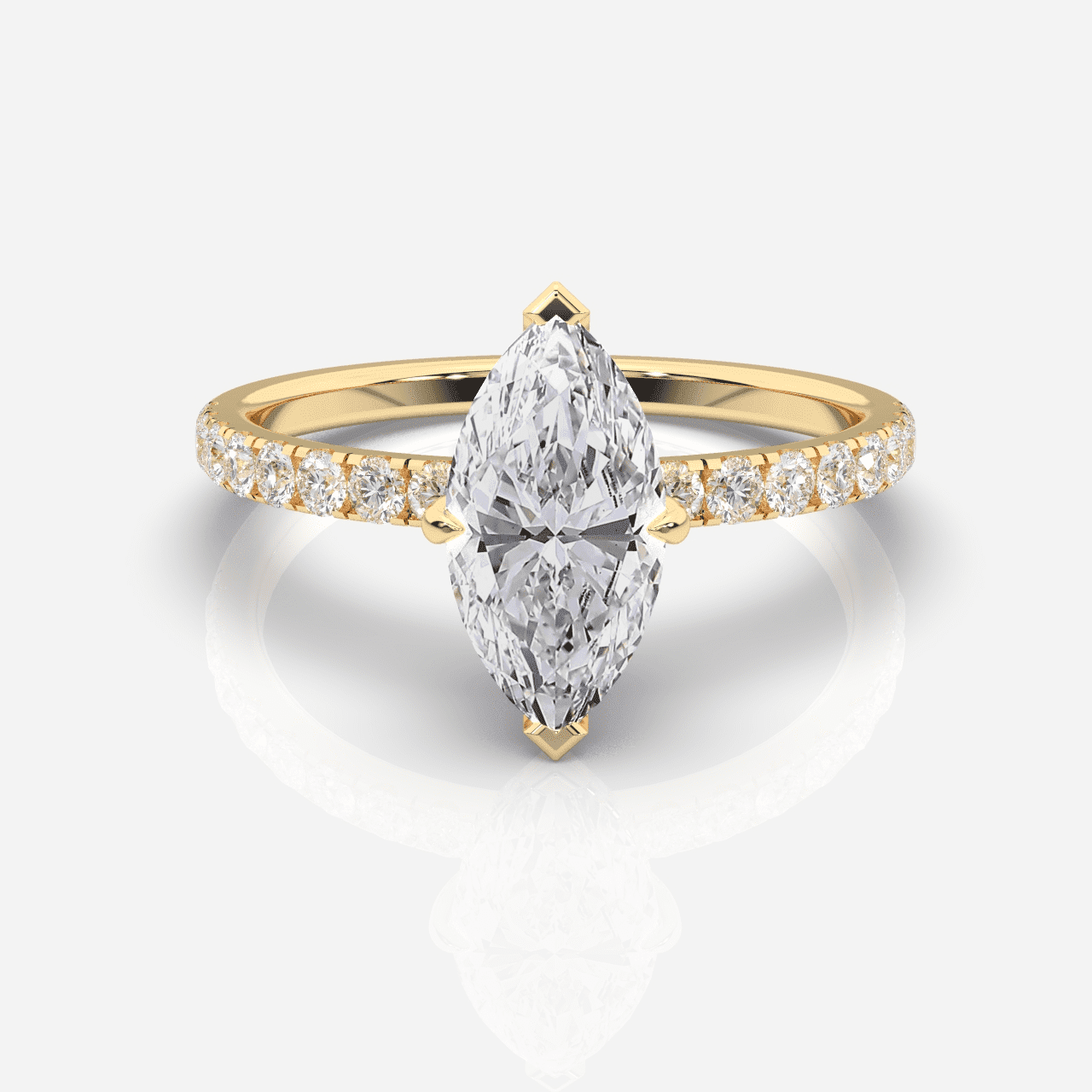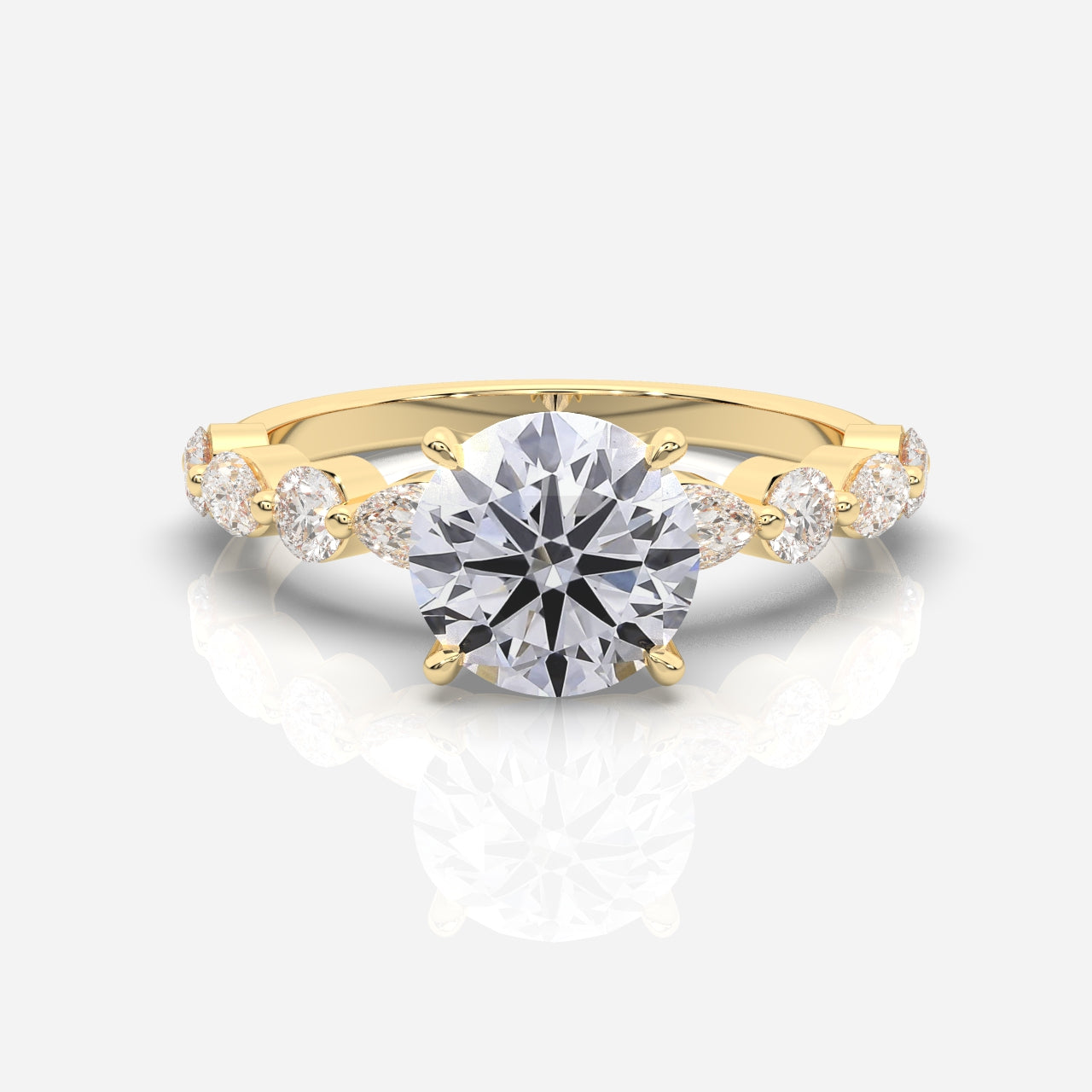 Utforska vår kollektion av sidostensringar och upplev förtrollningen av deras strålande design. Varje ring är skickligt utformad med gnistrande sidostenar av diamanter, vilket skapar en unik och personlig karaktär. Vår exklusiva samling av sidostensringar finns tillgängliga i 18 karat gult guld, vitt guld och roséguld.