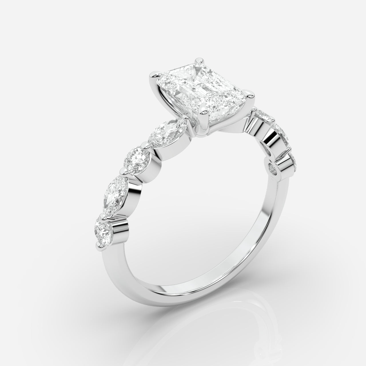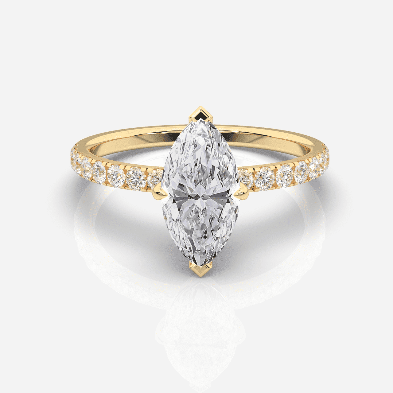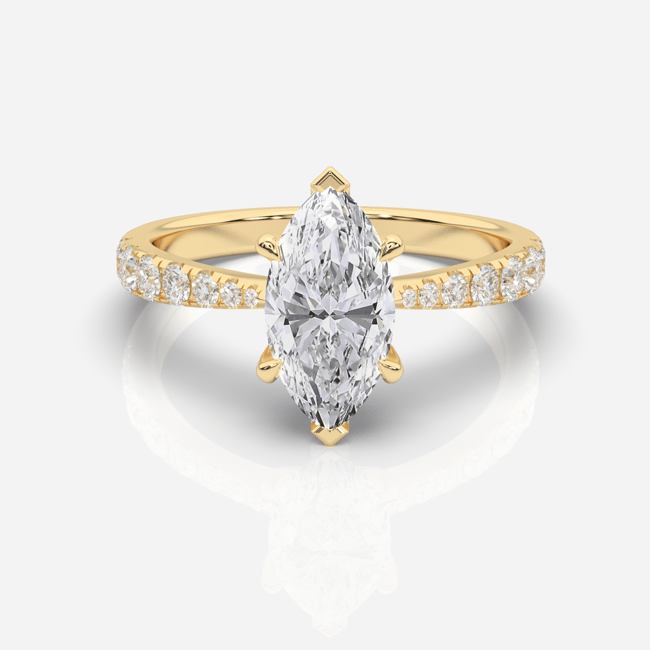 Utforska vår kollektion av sidostensringar och upplev förtrollningen av deras strålande design. Varje ring är skickligt utformad med gnistrande sidostenar av diamanter, vilket skapar en unik och personlig karaktär. Vår exklusiva samling av sidostensringar finns tillgängliga i 18 karat gult guld, vitt guld och roséguld.